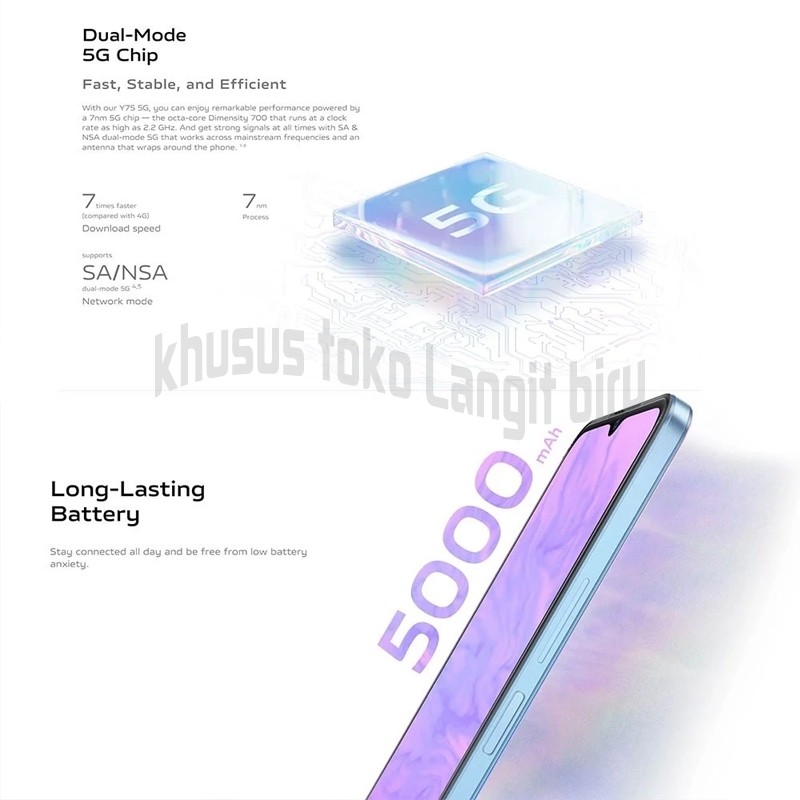 HP vv00 Y75 5G RAM 12GB/512GB Baru Tersegel ORI AI HD+ 66MP Layar 6.58 inci Garansi 12 Bulan