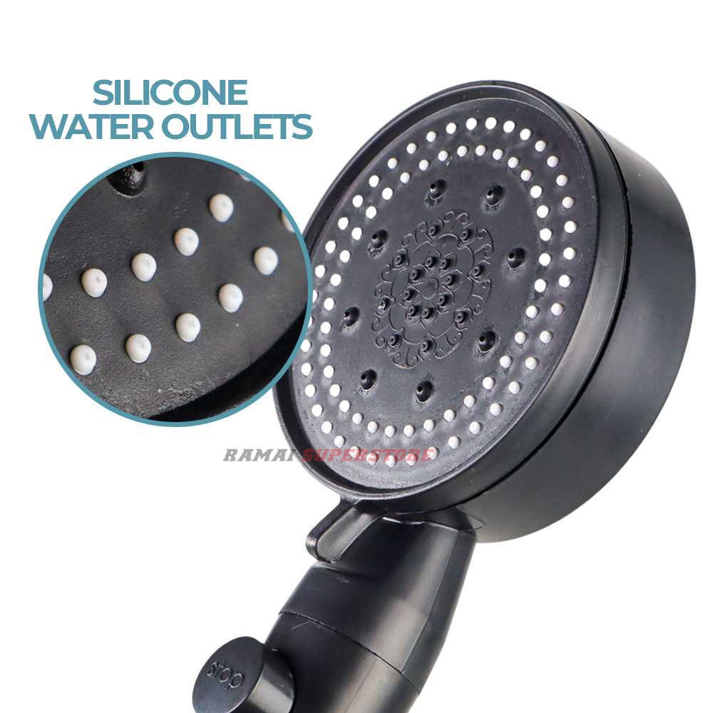 Kepala Shower Mandi Hitam Silver 5 Mode Premium