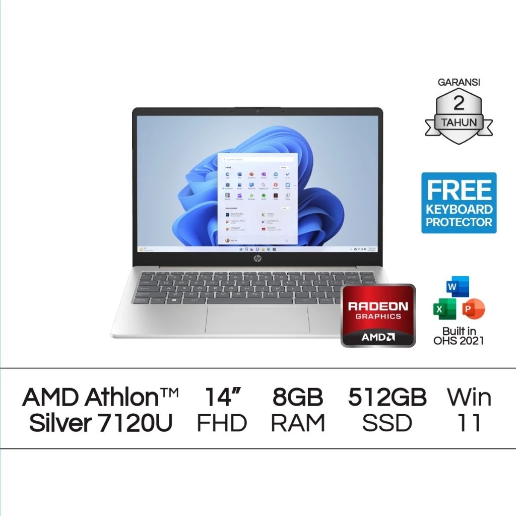 Laptop HP Athlon Silver 7120U AMD Radeon 8GB RAM / 512GB SSD / Windows 11 Home / 14 Inch FHD IPS / Back