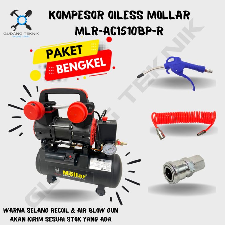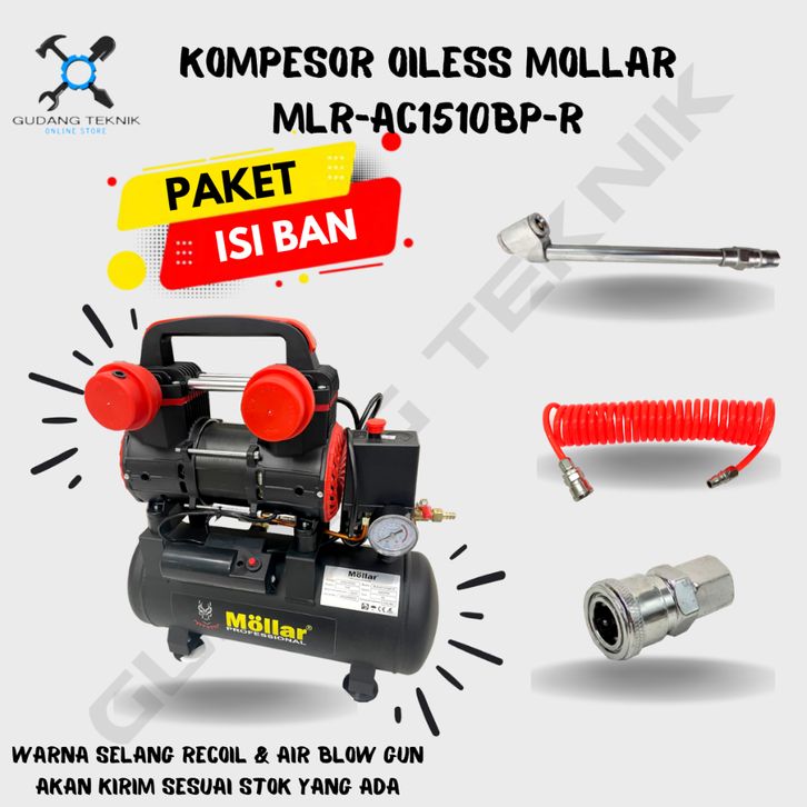 Kompresor Angin Listrik UNIT PAKET Kompresor Angin Listrik SIlent 10 Liter 1HP OILESS MLR AC1510BP R MOLLAR Air Compress