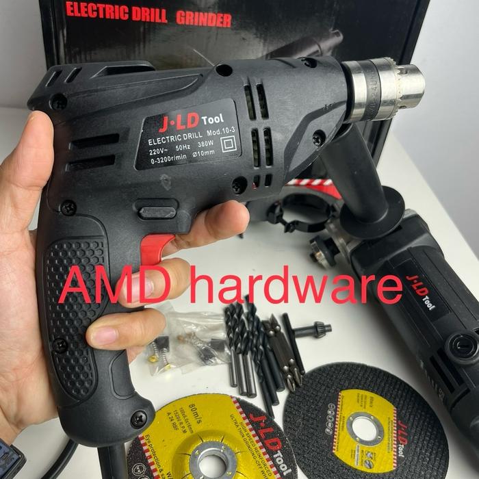 PAKET MESIN BOR 10mm +GERINDA TANGAN 4" SET JLD J 9954C & J 10-3 Lengkap Mata Bor Batu Potong