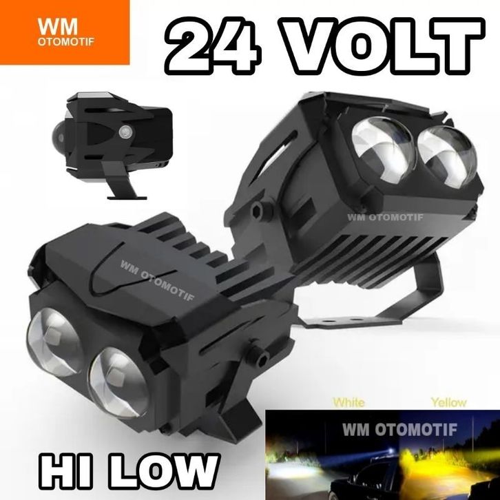 Lampu Tembak 24 Volt Sorot SQL 2 Mata OWL Laser Gun LED SQL2 Truk Bus Canter Putih Kuning 2 Warna D2 CSP White Yellow M