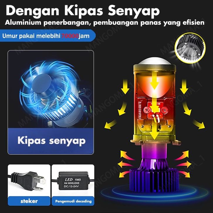 Lampu Led H4 Mobil Y6D Mini Projector Projie Super Terang Lampu Led Mobil 100Watt IP67 Waterproof