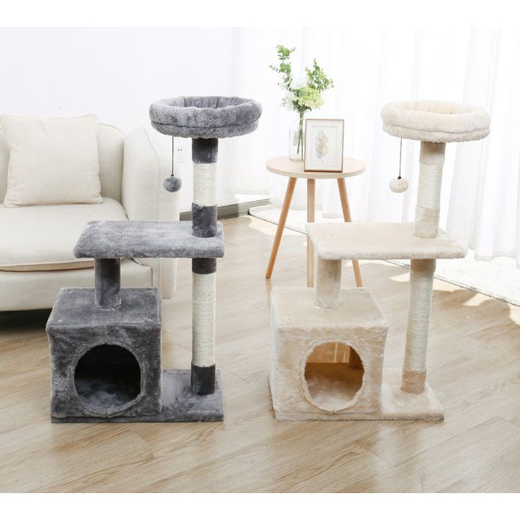 Cat tree condo 3tingkat size jumbo uk 40x40cm untuk semua usia hewan (bonus 1pcs kalung kucing cantik)