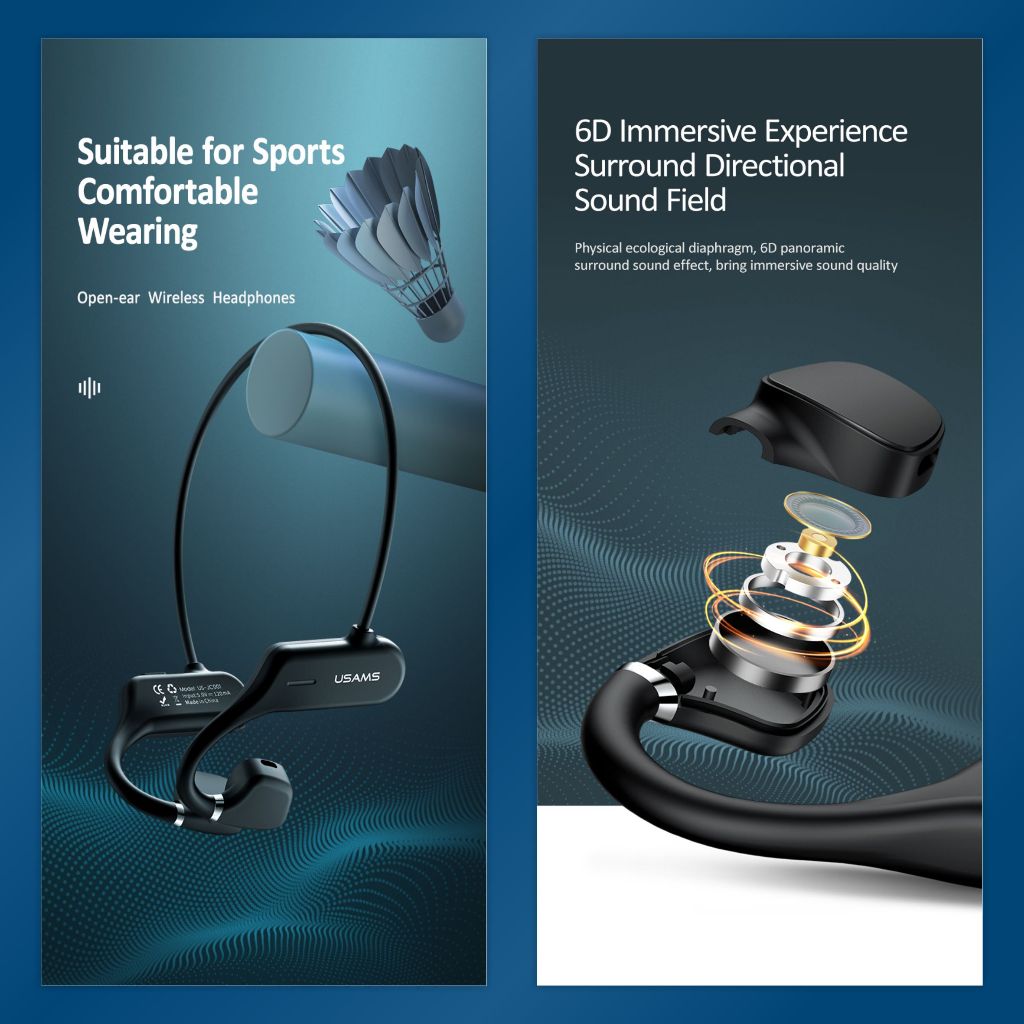 USAMS JC001 Headset Earphone Bluetooth Sport Open Ear BT5.0