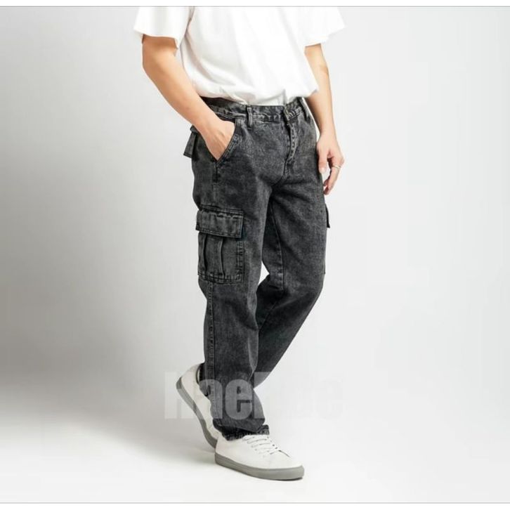 Celana Cargo Jeans Panjang Pria Reguler Standar Loose Fit Cargo Gombrong Jeans Pria Size 27-38 Terbaru