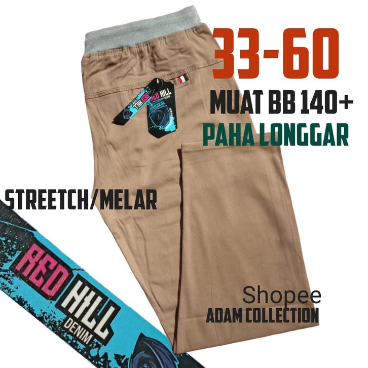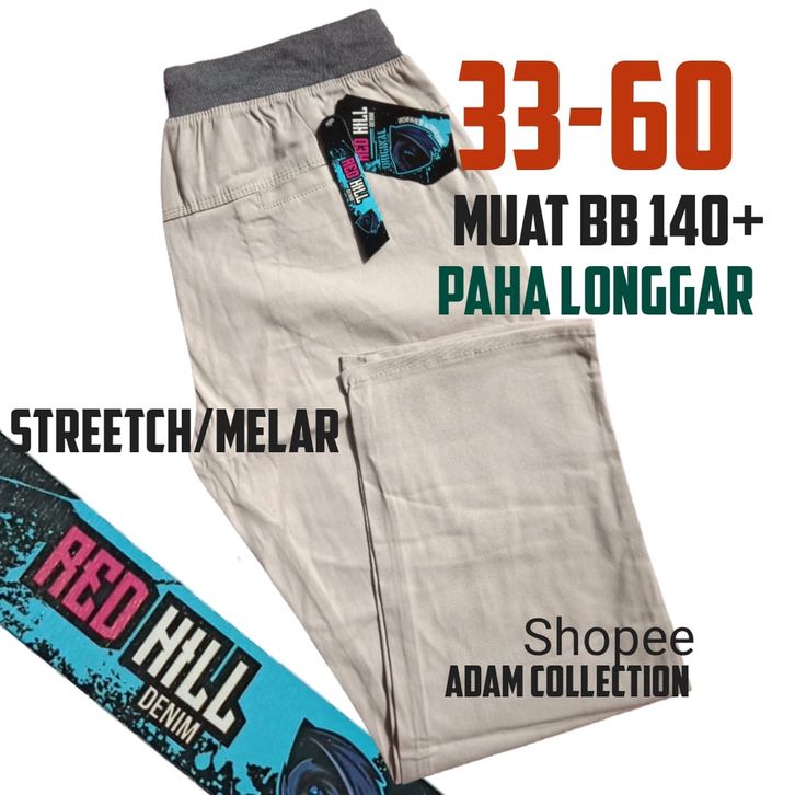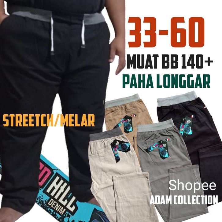 Celana Chino Panjang Pria Super Jumbo Big Size Formal Chinos Pinggang Karet Rip Streetch Melar Standar Reguler Longgar