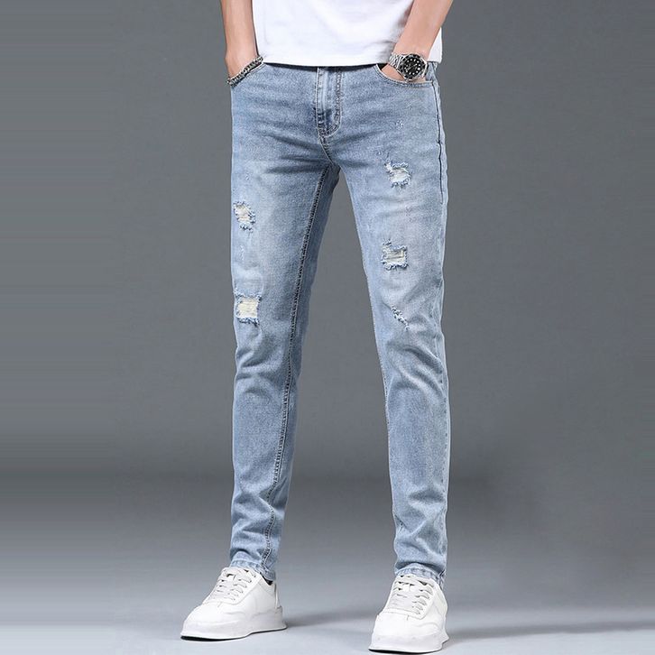 Celana Jeans Pria Sobek Abu Grey Slimfit Stretch Panjang Cowok Ripped Skinny Pensil Celana Denim Dewasa Robek Korea Styl