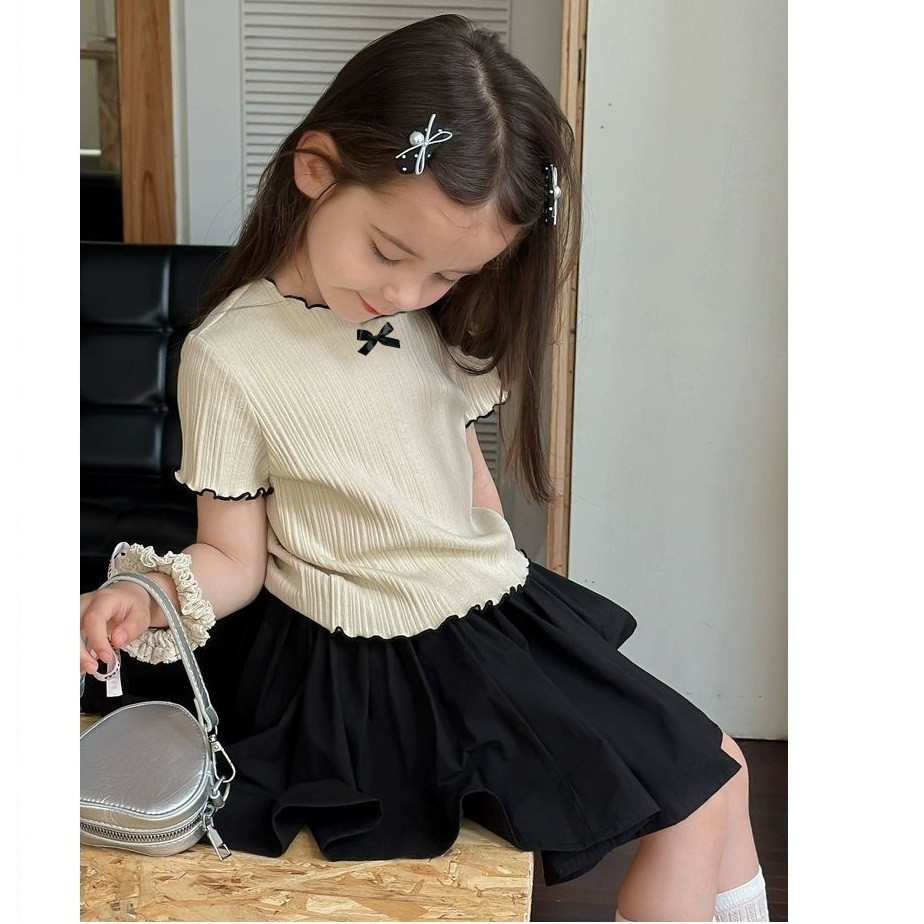 BAJU KAOS ATASAN ANAK PEREMPUAN KAOS LENGAN PENDEK PITA DEPAN