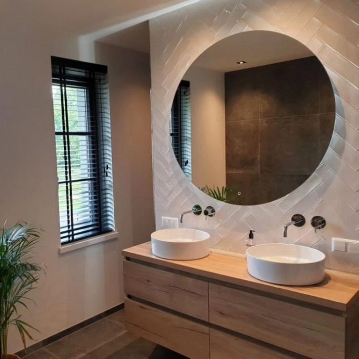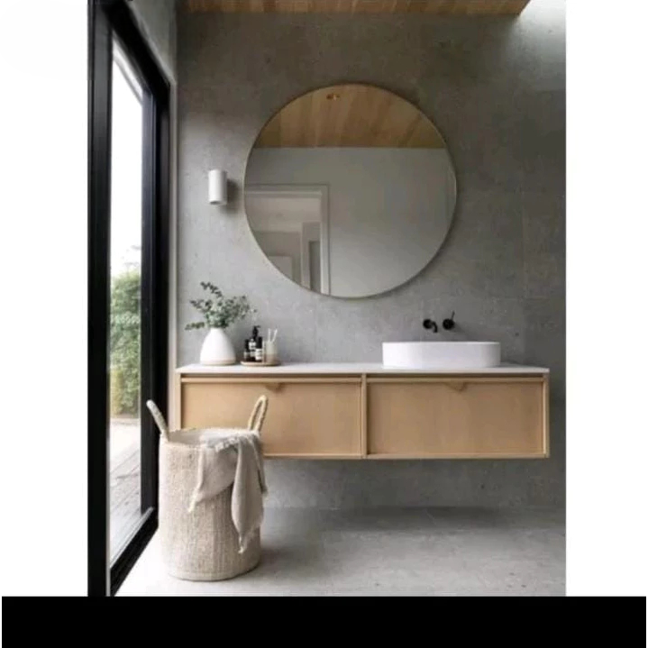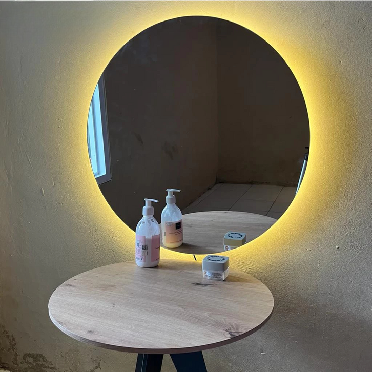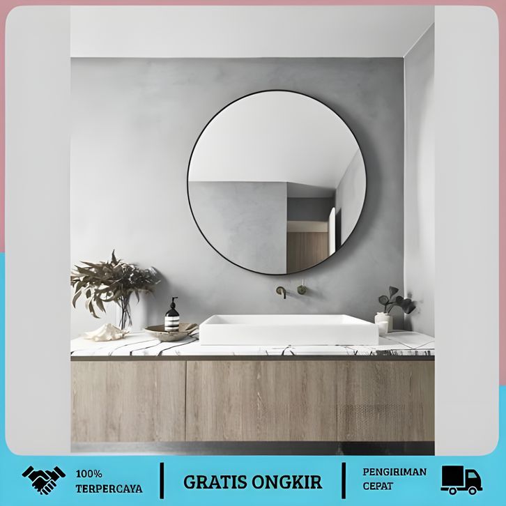 Kaca Cermin Dinding Bulat / Bundar Aesthetic Berbagai Ukuran Cermin Tempel Lampu LED Dan Touchscreen Termurah
