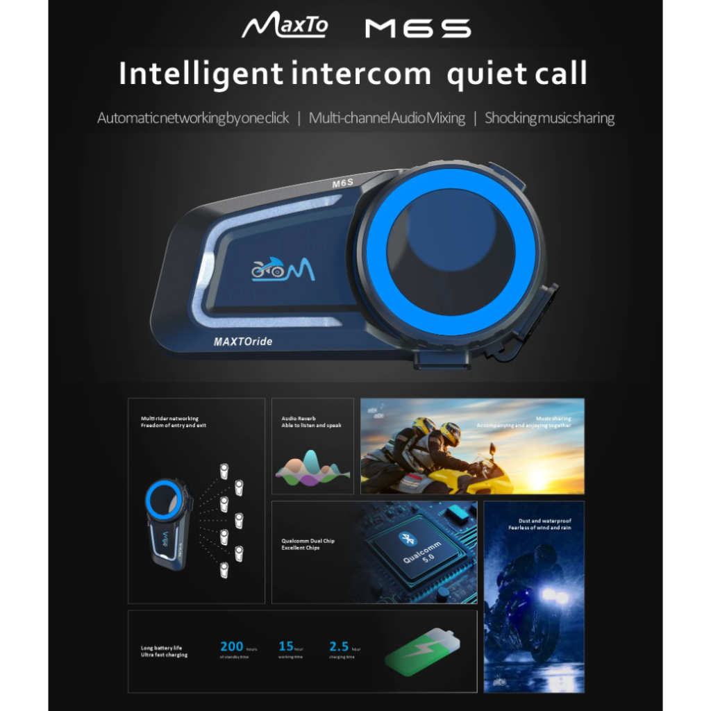 Maxto M6S Mesh Bluetooth Intercom Helm Music Sharing Alt M2 M2C M3 M3S