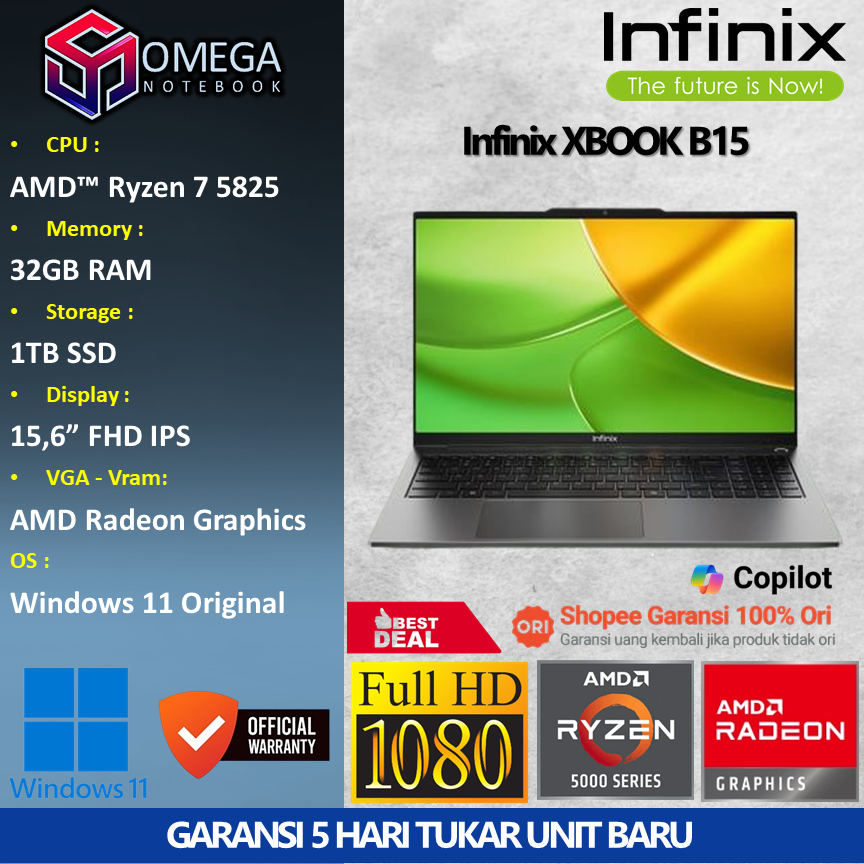 Laptop Infinix XBOOK B15 Ryzen 7 5825 32GB 1TB 15,6 FHD Windows 11