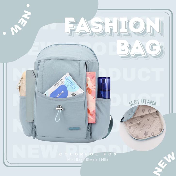 Tas Sekolah Anak Perempuan TK SD SMP SMA SMK Kuliah Colorful Foc 809 Series Premium Tas Ransel Gendong Anti Air Murah