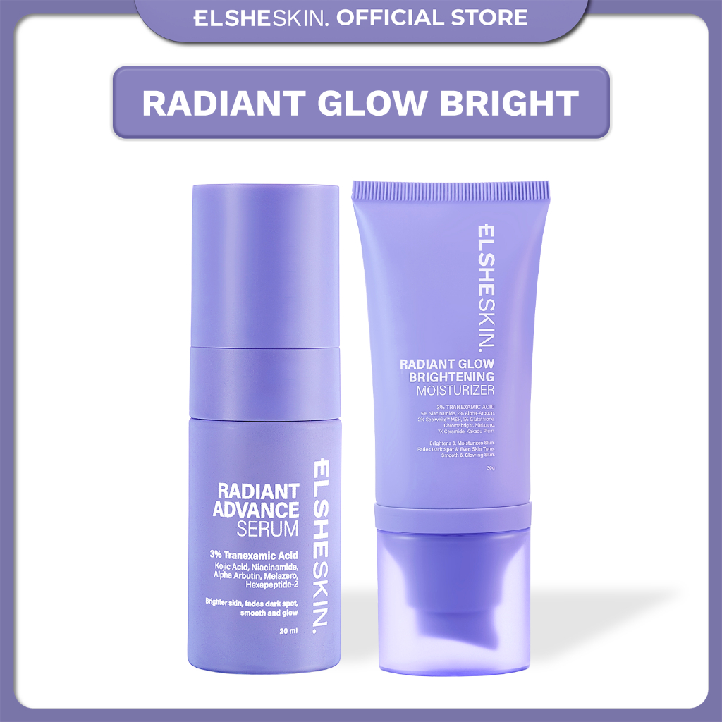 RADIANT GLOW BRIGHT Elsheskin 2 pcs Brightening Serum Pencerah Meratakan Warna Kulit Extract SkinCare Essence Mencerahkan Wajah Hitam Dark Memudarkan Perawatan Vitamin Ceramide Kusam