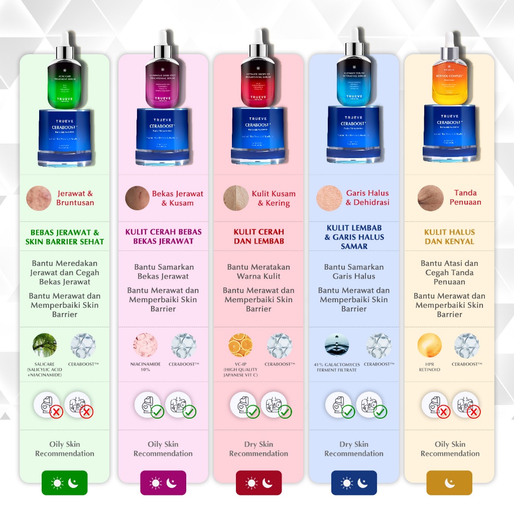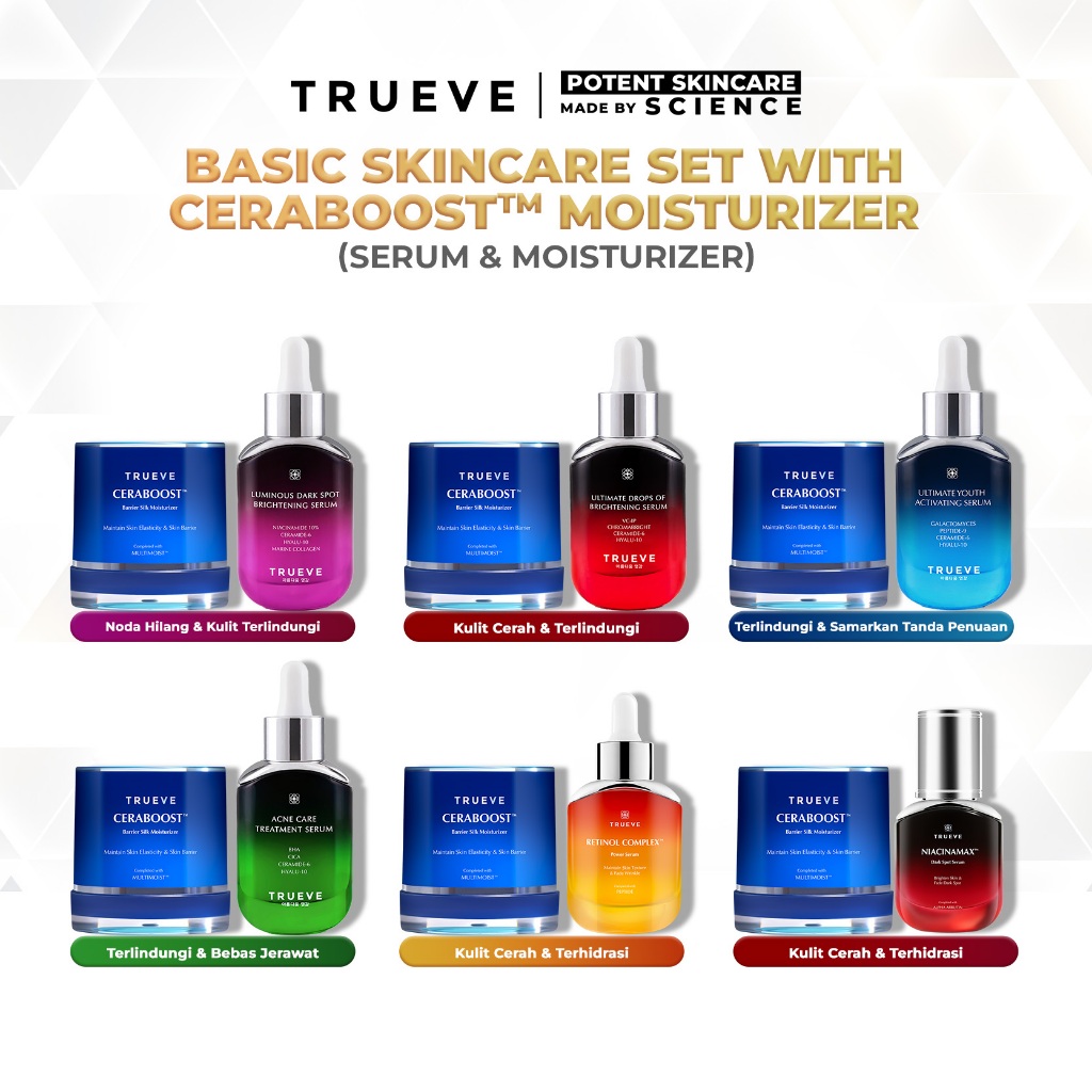 PAKET 2 PCS TRUEVE Ceraboost Moisturizer Gel 30g & Serum 30ml for All Skin Concern Luminous Dark Spot, Ultimate Drops, Acne Care, Retinol Complex, Acne Youth, Niacinamax