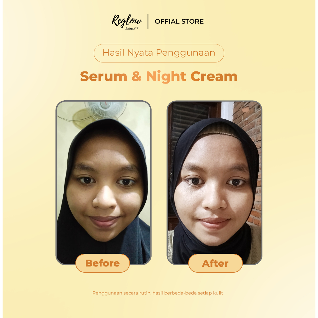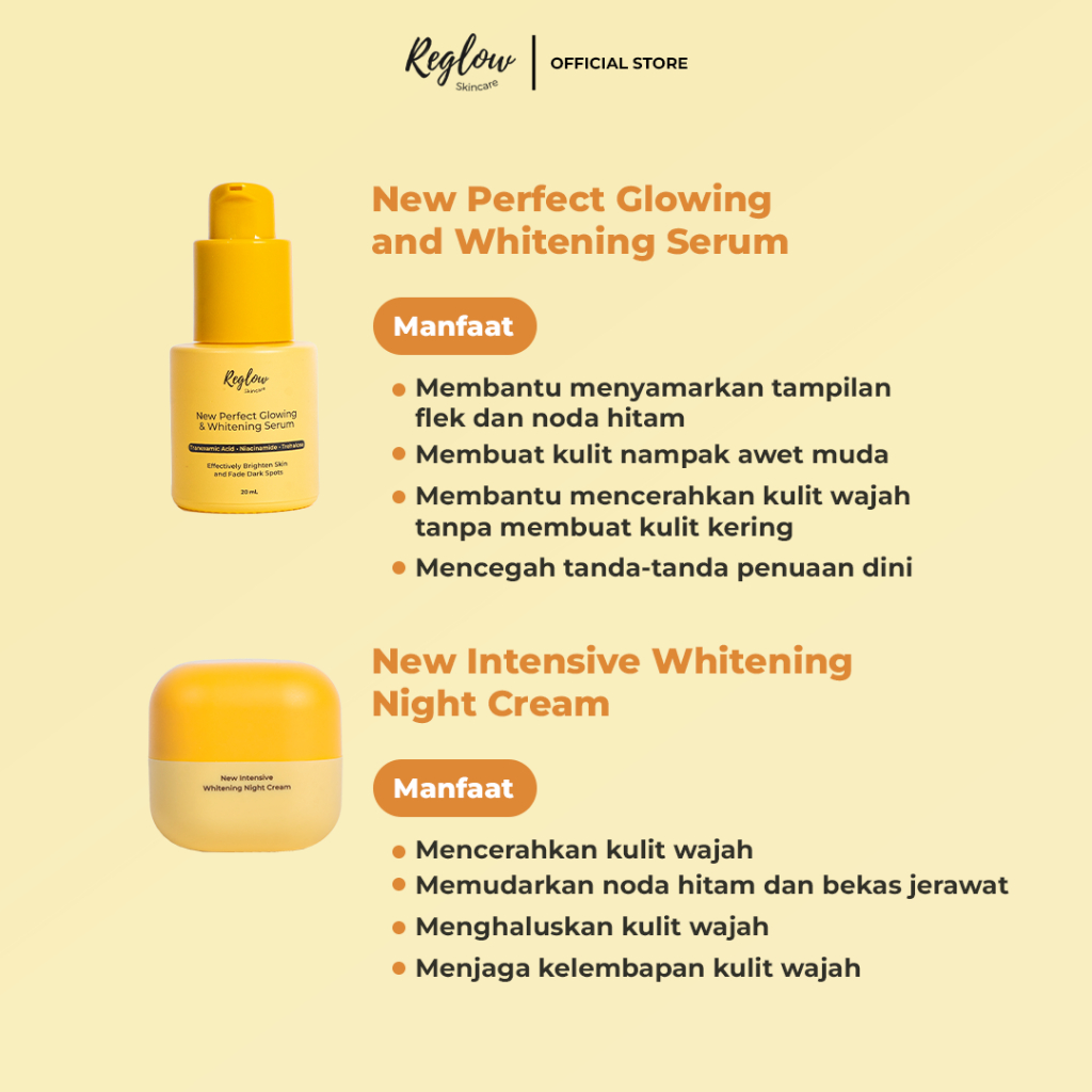 Reglow Perfect Glowing and Whitening Serum & Reglow Intensive Whitening Night Cream Membantu Merawat Kulit Lebih Cerah Merata, Pudarkan Flek dan Kusam, Kelembapan Sepanjang Hari