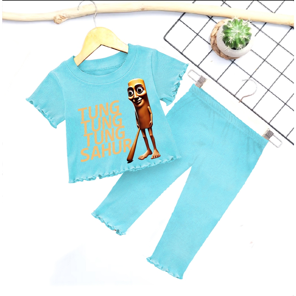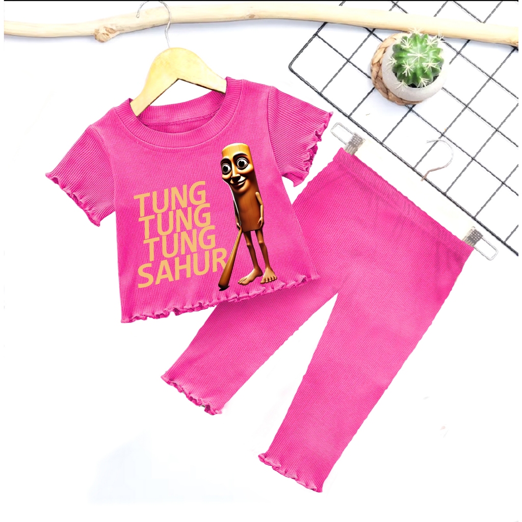 Baju Setelan Anak Perempuan Tung Tung Tung Sahur Anomali Panjang Usia 0-5 Tahun