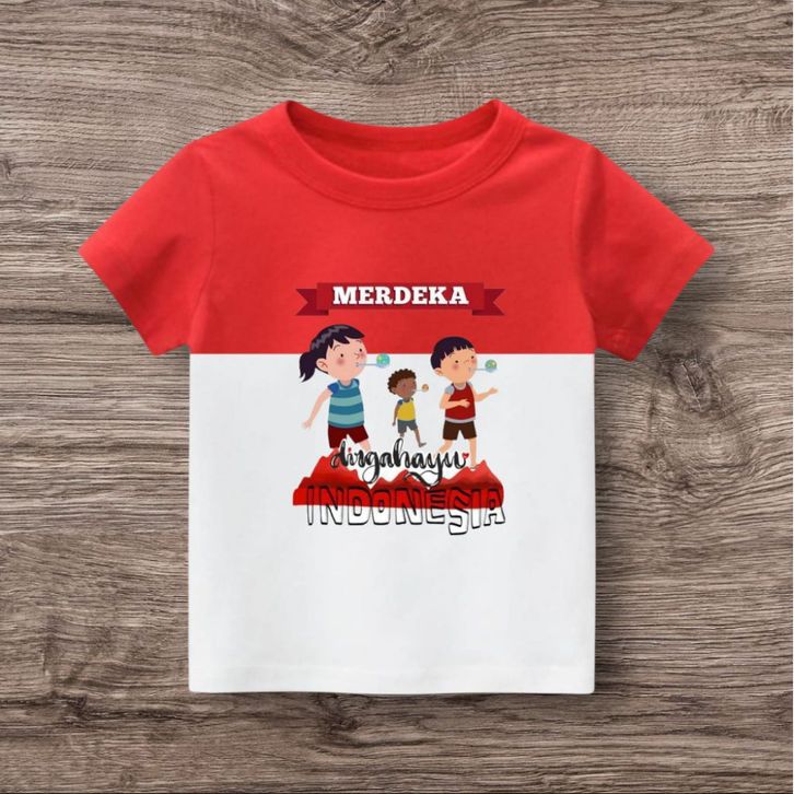 KAOS ANAK-ANAK AGUSTUSAN UNISEX UMUR 1-9 TAHUN/KAOS KOMBINASI MERAH PUTIH