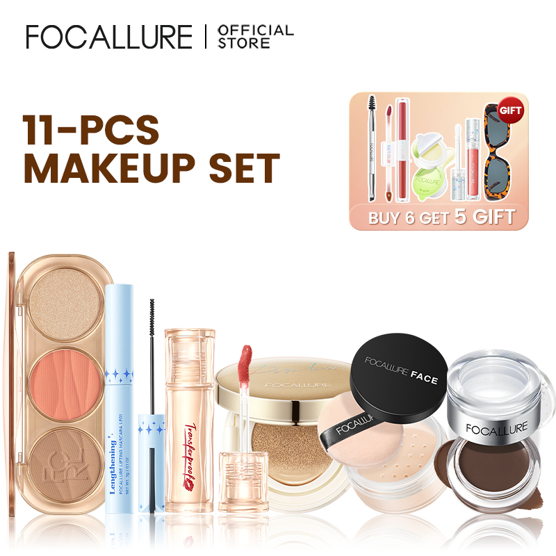 FOCALLURE 9PCS 9/11 PCS Set Lip Tint Mascara BB Cushion Loose Powder Eyebrow Cream Gel 3IN1 Palette