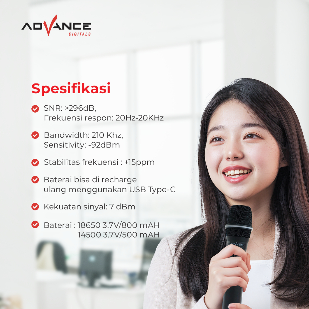 TERLARIS ADVANCE MIC208 PLUS PROFESIONAL MICROPHONE WIRELESS ISI 4 MICROPHONE JACK 65MM GARANSI 1 TAHUN