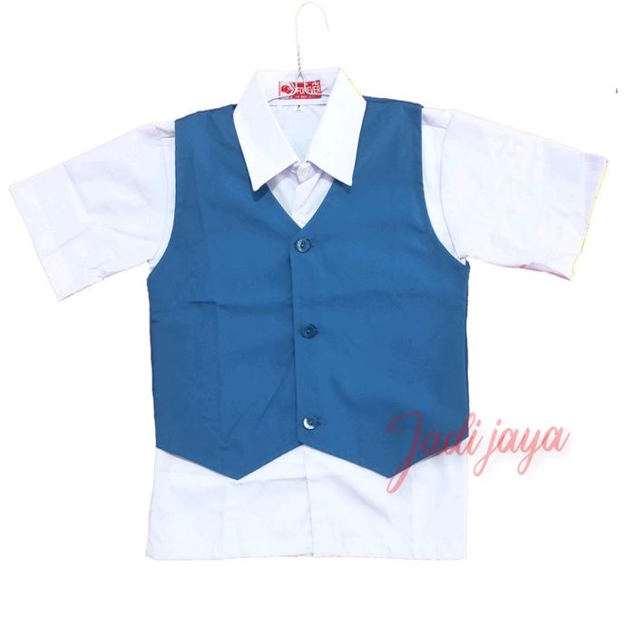 TERLARIS 1 SET BAJU SETELAN SERAGAM ANAK TK BIRU ( BAJU+ROMPI+CELANAROK) LENGAN PENDEKANAK LAKI, 4 THN
