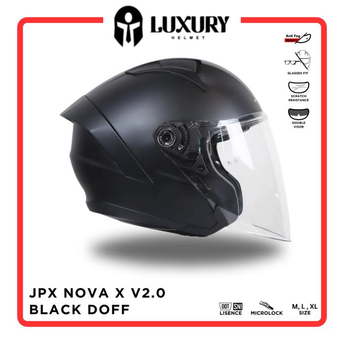 DP 0 HELM JPX NOVA X V20 SOLID BLACK DOFF HALF FACE DOUBLE VISOR L