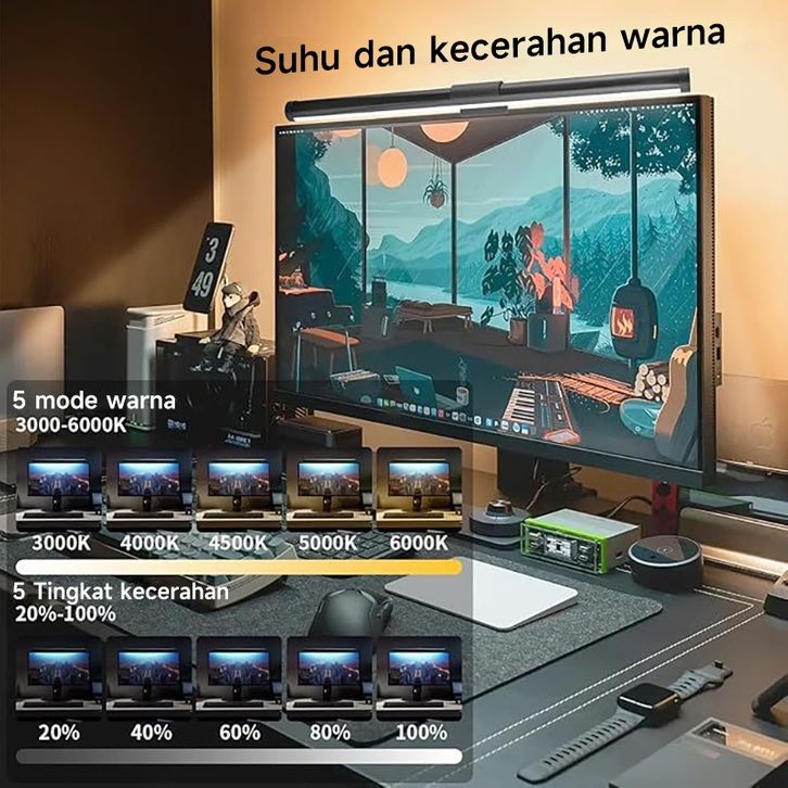 LED Monitor Lampu Bar Gantung Laya RGB Dimming Screen Hanging Light Eye care Adjustable Reading Lamp