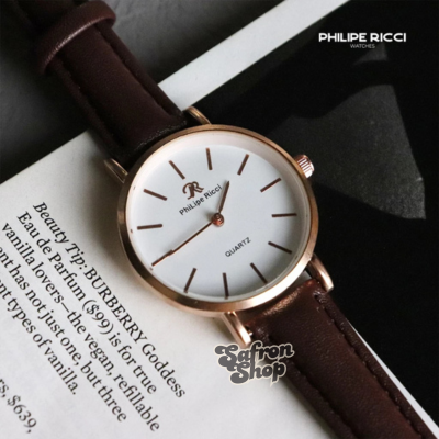 PhiLipe Ricci Jam Tangan Wanita Tipis 100% Original Kulit Kecil Fashion Simple Cewek Quartz Analog Dial Bulat Strap Tali