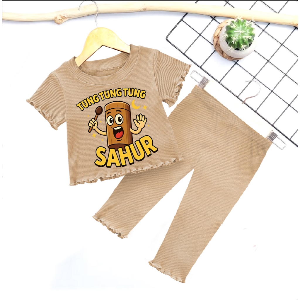 Setelan Baju Anak Tung Tung Sahur Anomali Perempuan Panjang Usia 1 2 3 4 5 Tahun