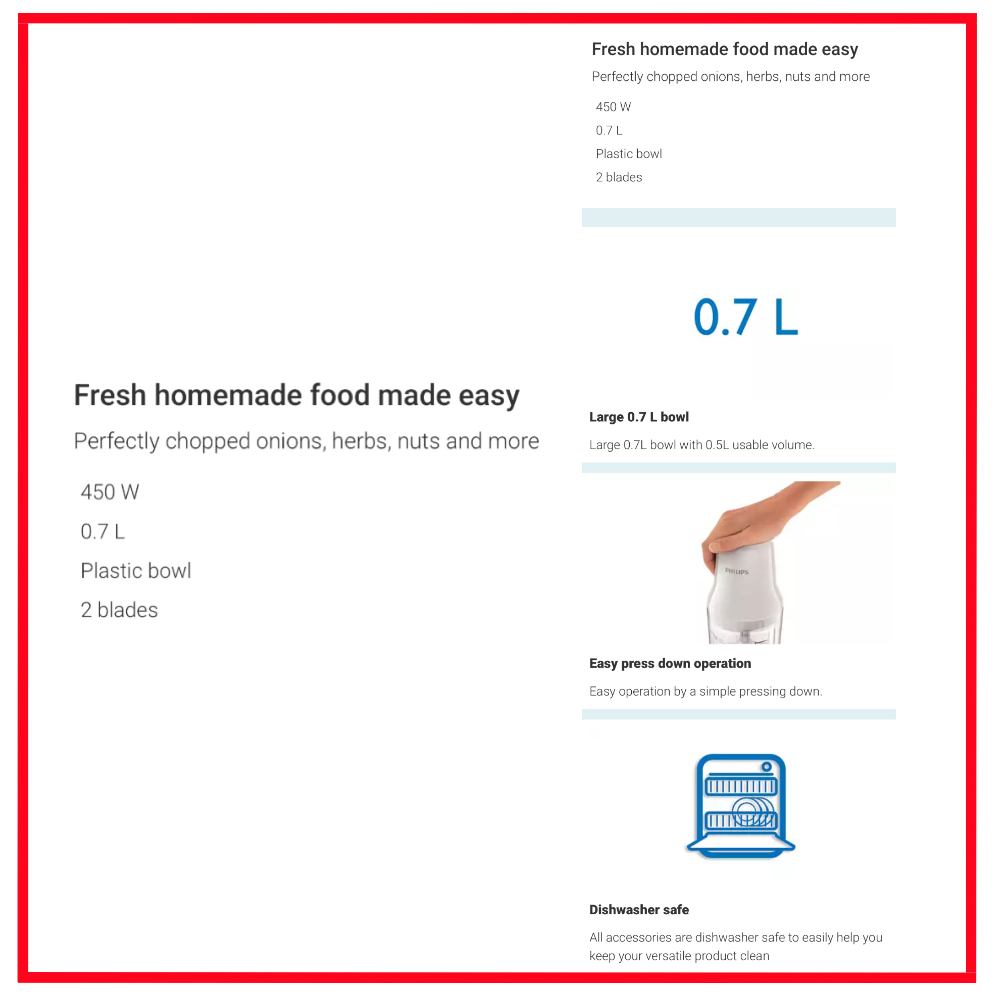 Philips HR1393/00 Chopper Electric Serbaguna 0.7L Daily Collection HR 1393 Penggiling Daging