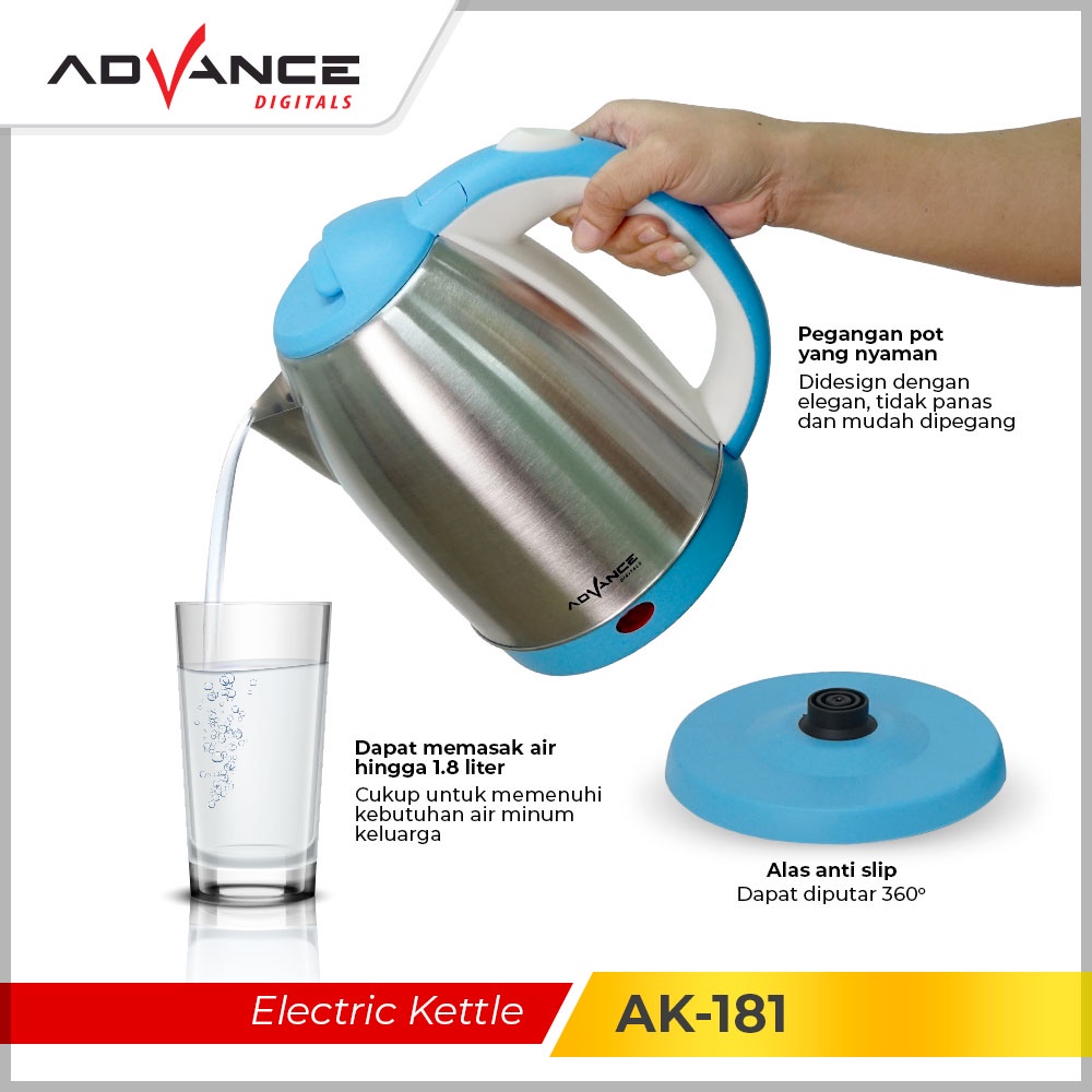 TERLARIS ADVANCE AK181 KETTLE LISTRIK TEKO LISTRIK KAPASITAS 18 LITER HEMAT LISTRIK