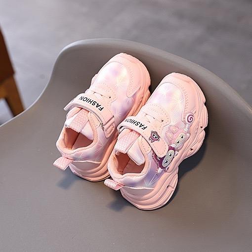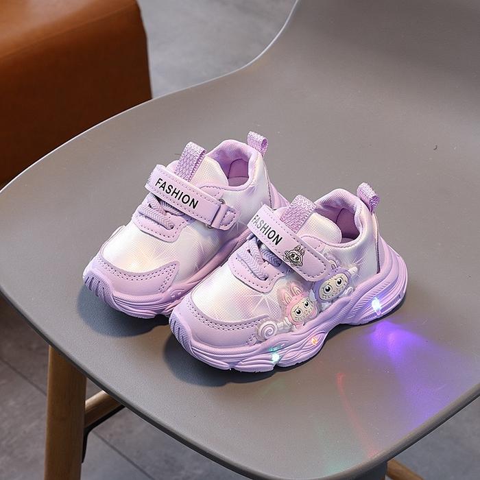 TERLARIS AXELINESEPATU SNEAKERS ANAK PEREMPUAN LABULABU LED 2130 SEPATU ANAK PREWALKER PAUD BABYPINK, 21