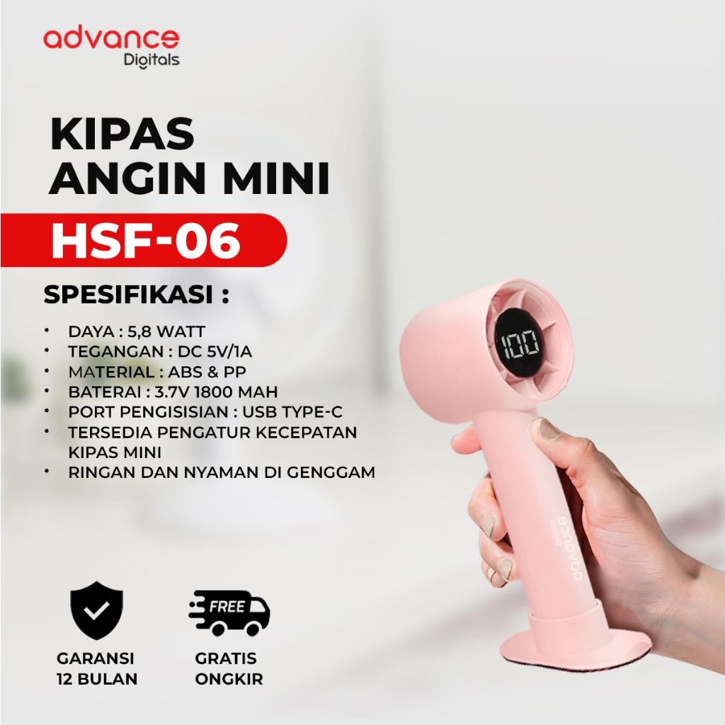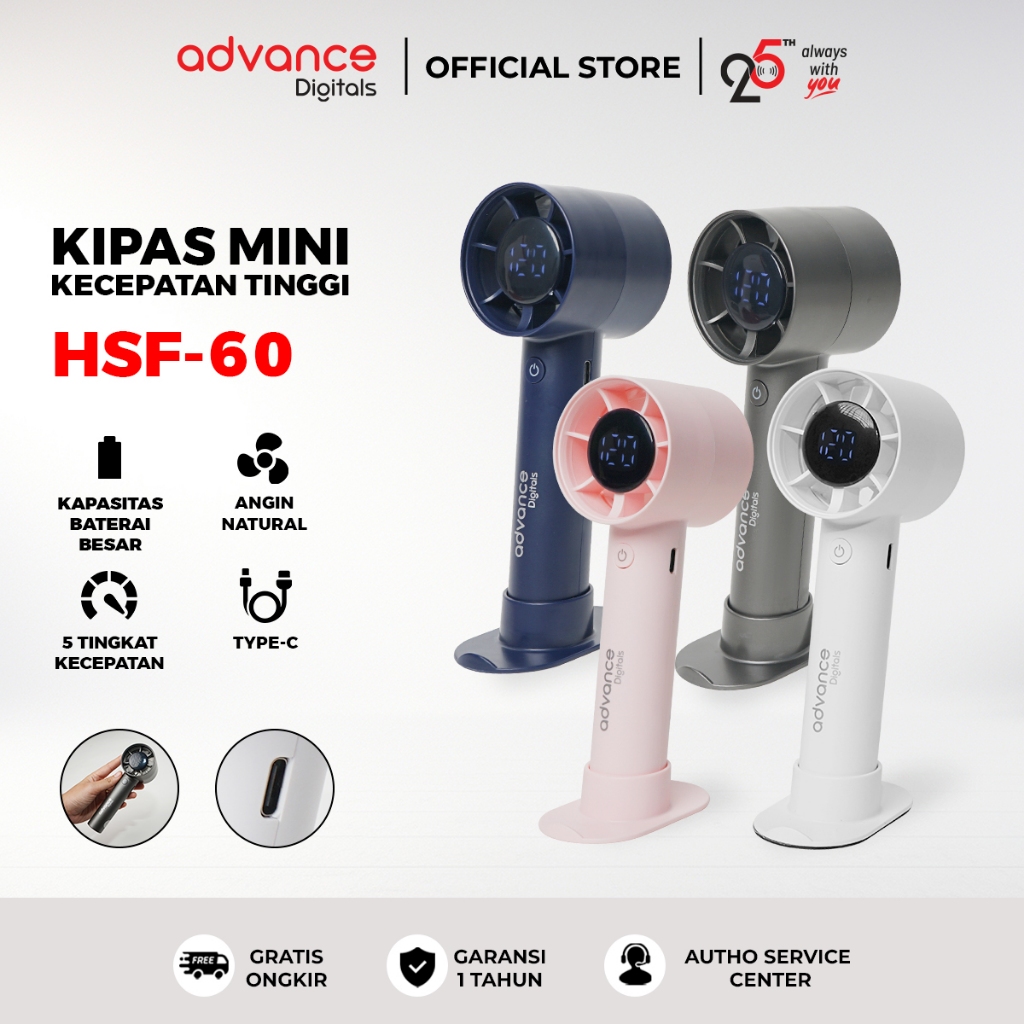 TERLARIS ADVANCE KIPAS ANGIN MINI TURBO HSF60 HIGHSPEED DISPLAY LED ADJUSTABLE FAN GARANSI RESMI 1 TAHUN