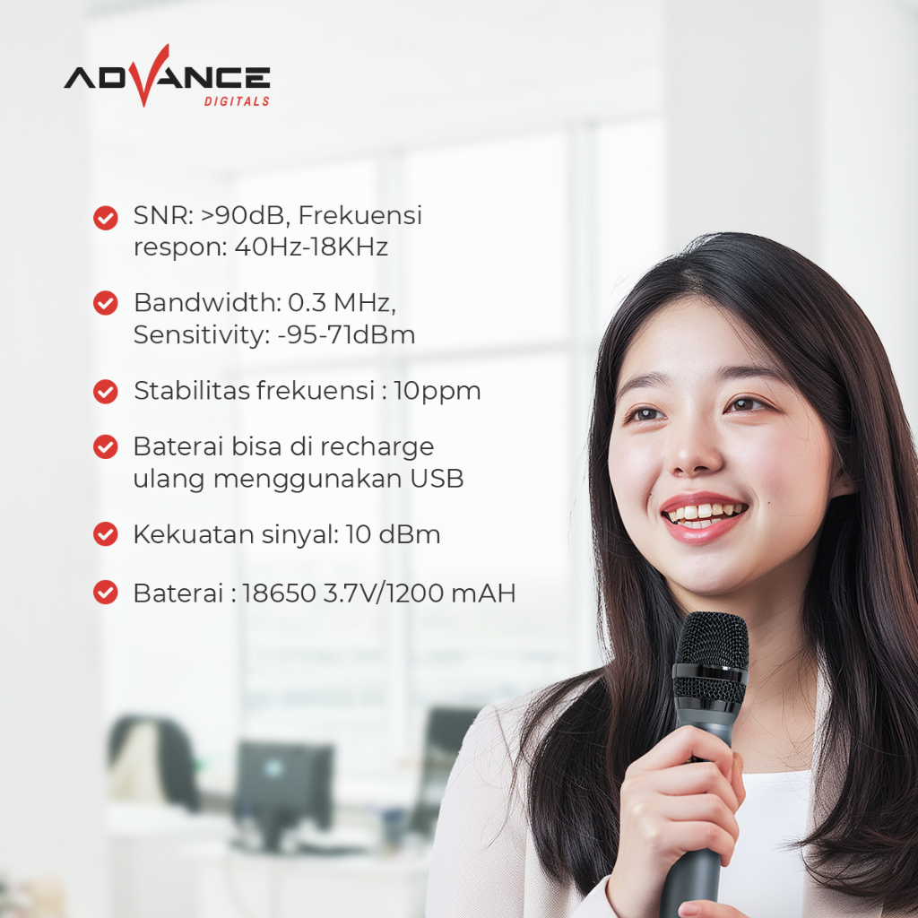 TERLARIS ADVANCE MIC403 PROFESIONAL WIRELESS MICROPHONE DUET WITH CASE GARANSI RESMI 1 TAHUN