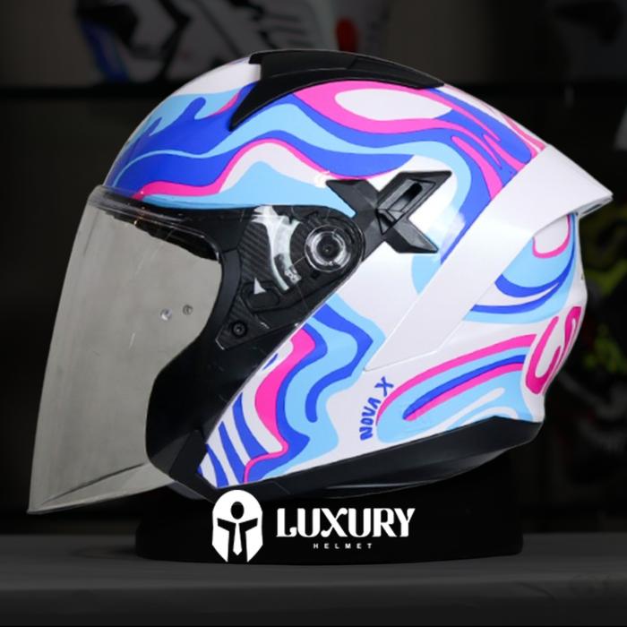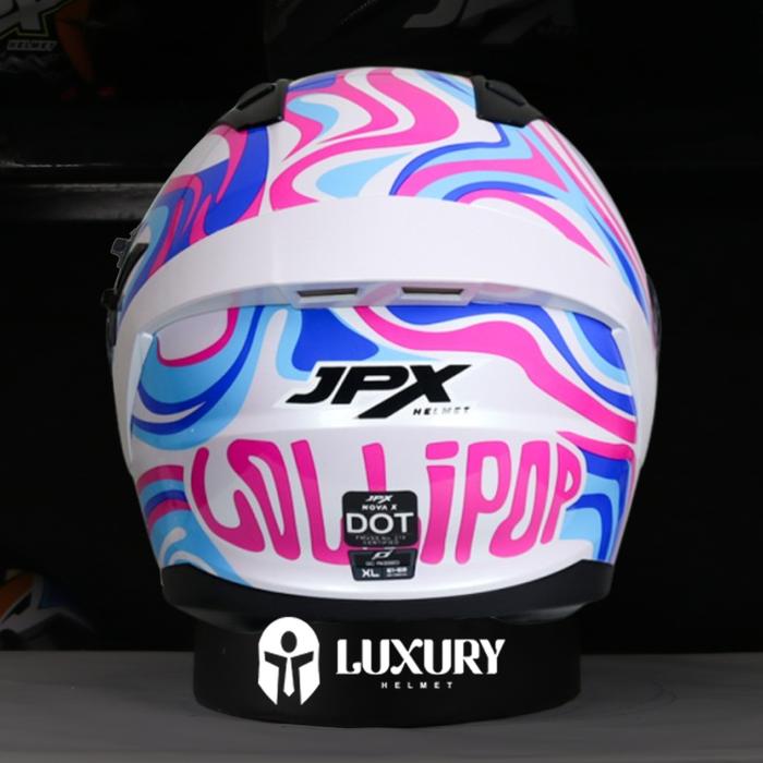 DP 0 HELM JPX NOVA X V20 MOTIF N3 LOLLIPOP HALF FACE DOUBLE VISOR PEARL WHITE L
