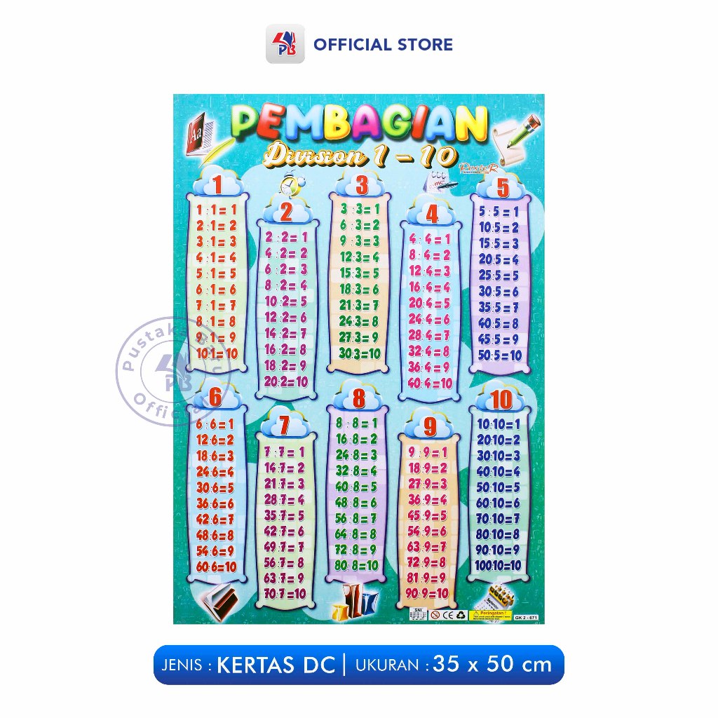 TERLARIS POSTER EDUKASI ANAK MAINAN EDUKASI ANAK NUMBER ANGKA PEMBAGIAN PENGURANGAN PERKALIAN PENJUMLAHAN BERWARNAPUST