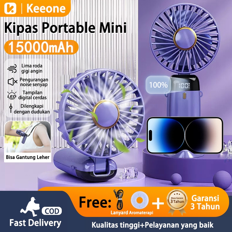 TERLARIS 2024 KIPAS ANGIN MINI PORTABLE USB 15000MAH 5SPEED WIND KIPAS LIPAT&LED DISPLAY MINI FAN PORTABLE AROMAT