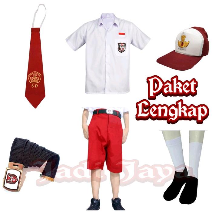 TERLARIS 1 SET SERAGAM MERAH PUTIH LAKI BAJU PENDEK CELANA PENDEK SD1SET MR LKI PDK2 + TOPI MERAH PUTIH, 6 TH