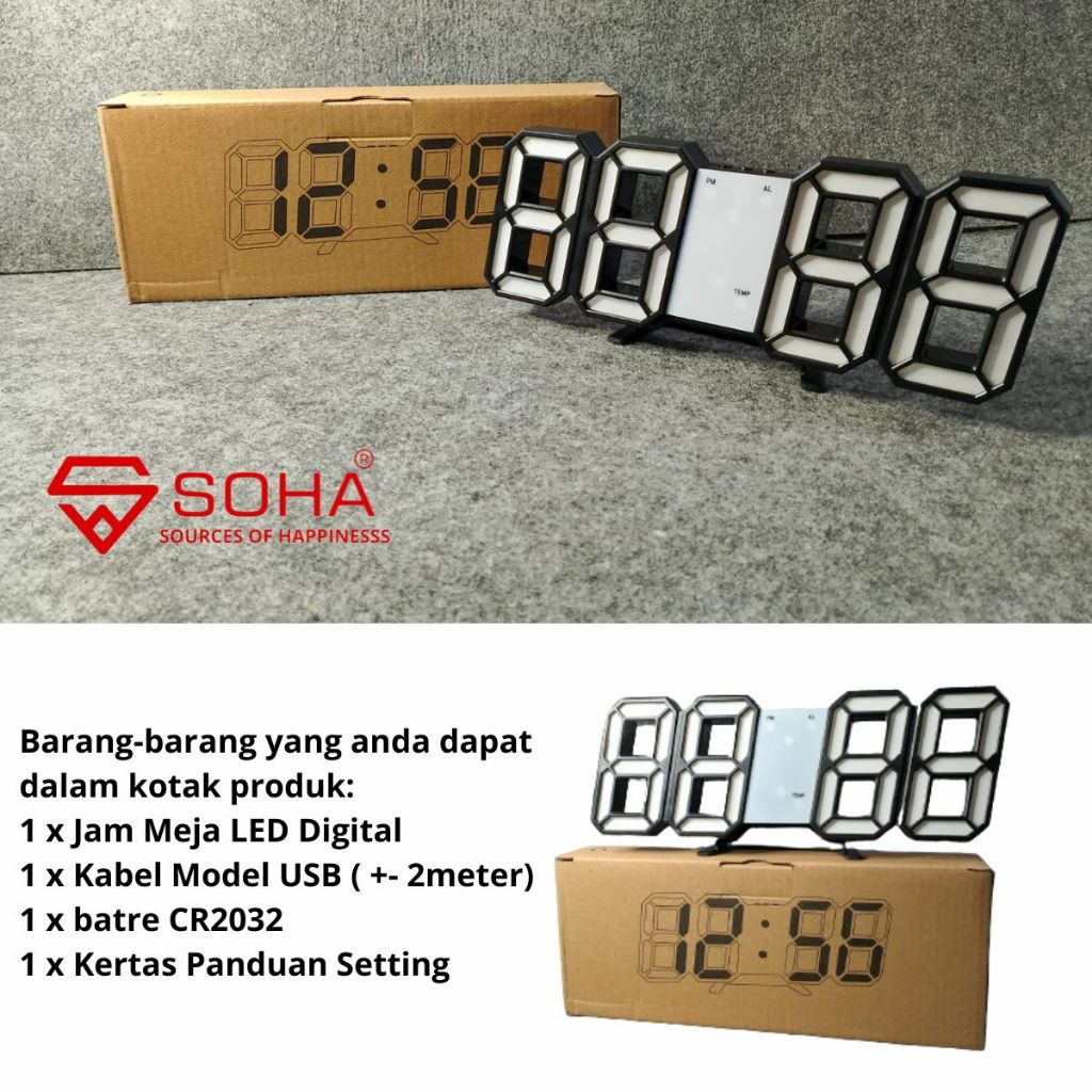 TERLARIS JD01 SOHA JAM 3D DIGITAL DINDING MEJA TEMBOK LAMPU LED LIGHT CLOCK WALL DEKORASI MINIMALIS