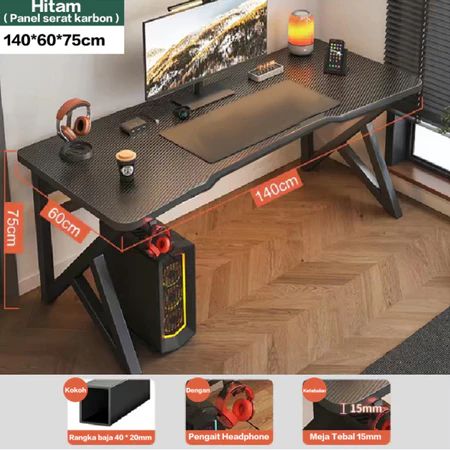 Meja Komputer Minimalis Meja Gaming Meja L Pola Fiber Karbon Meja Gaming Meja Kantor