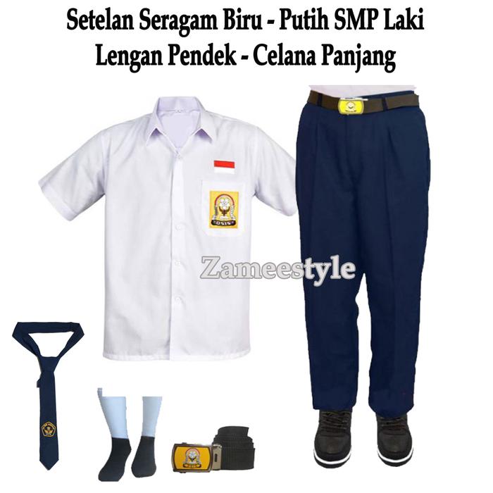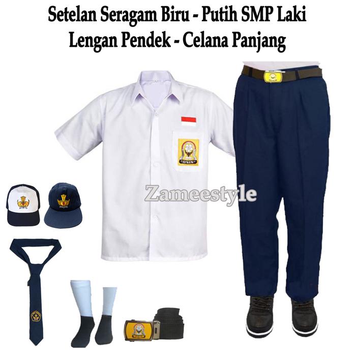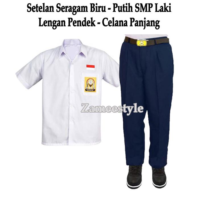 TERLARIS PAKET LENGKAP SETELAN SERAGAM ANAK SEKOLAH SMP BIRU PUTIH LAKI LENGAN PENDEKHANYA BAJU+CELANA, KELAS