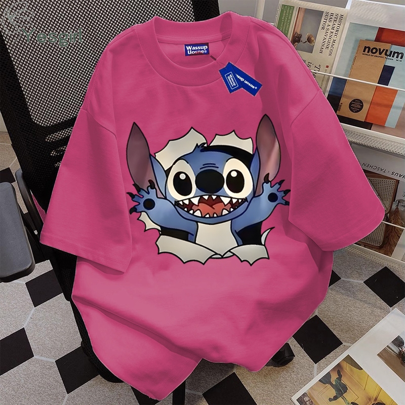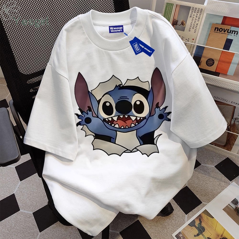 Yesgirl Korea style Cartoon Stitch print kaos kasual longgar| Kaos Oversize Wanita | Fashion korean style baju kaos over