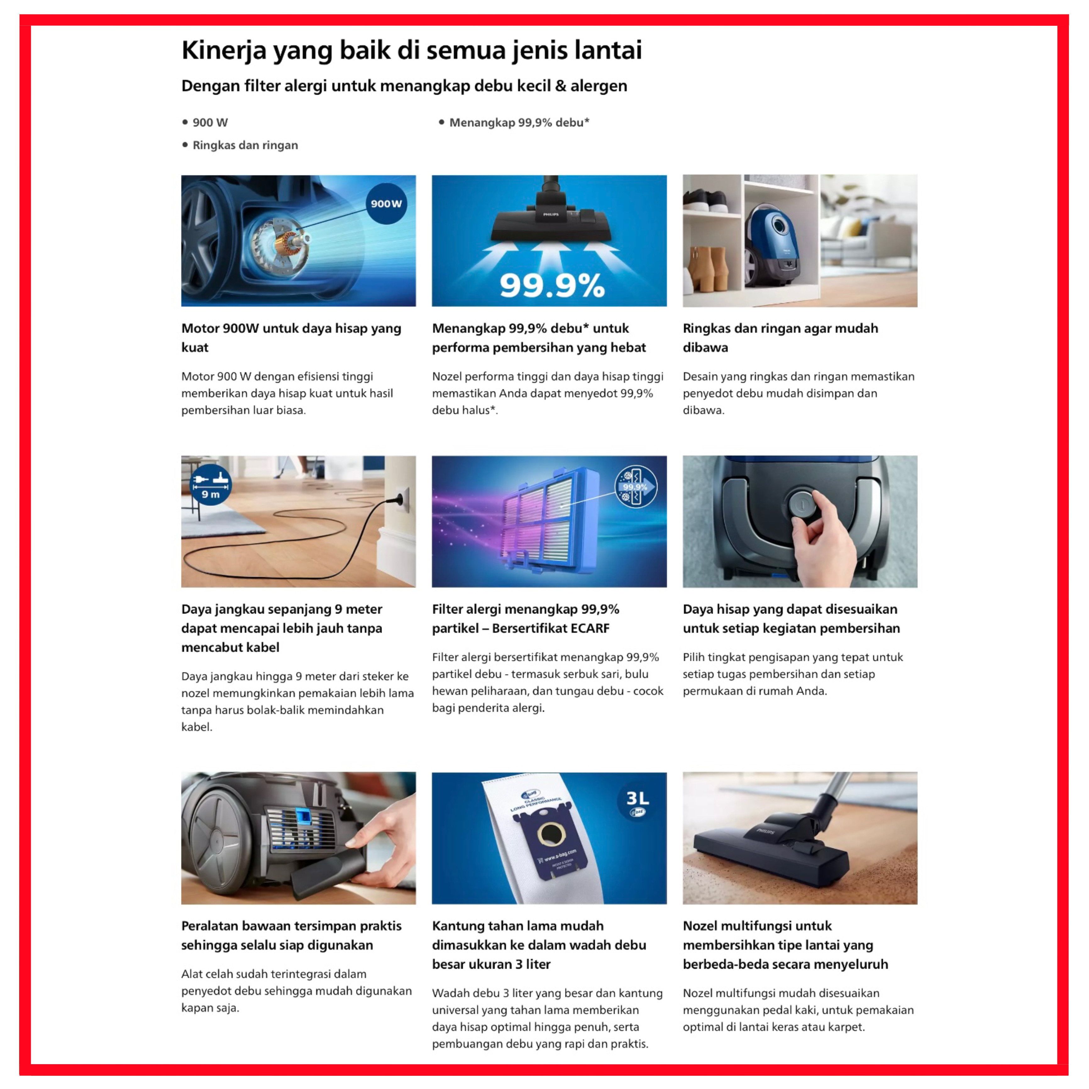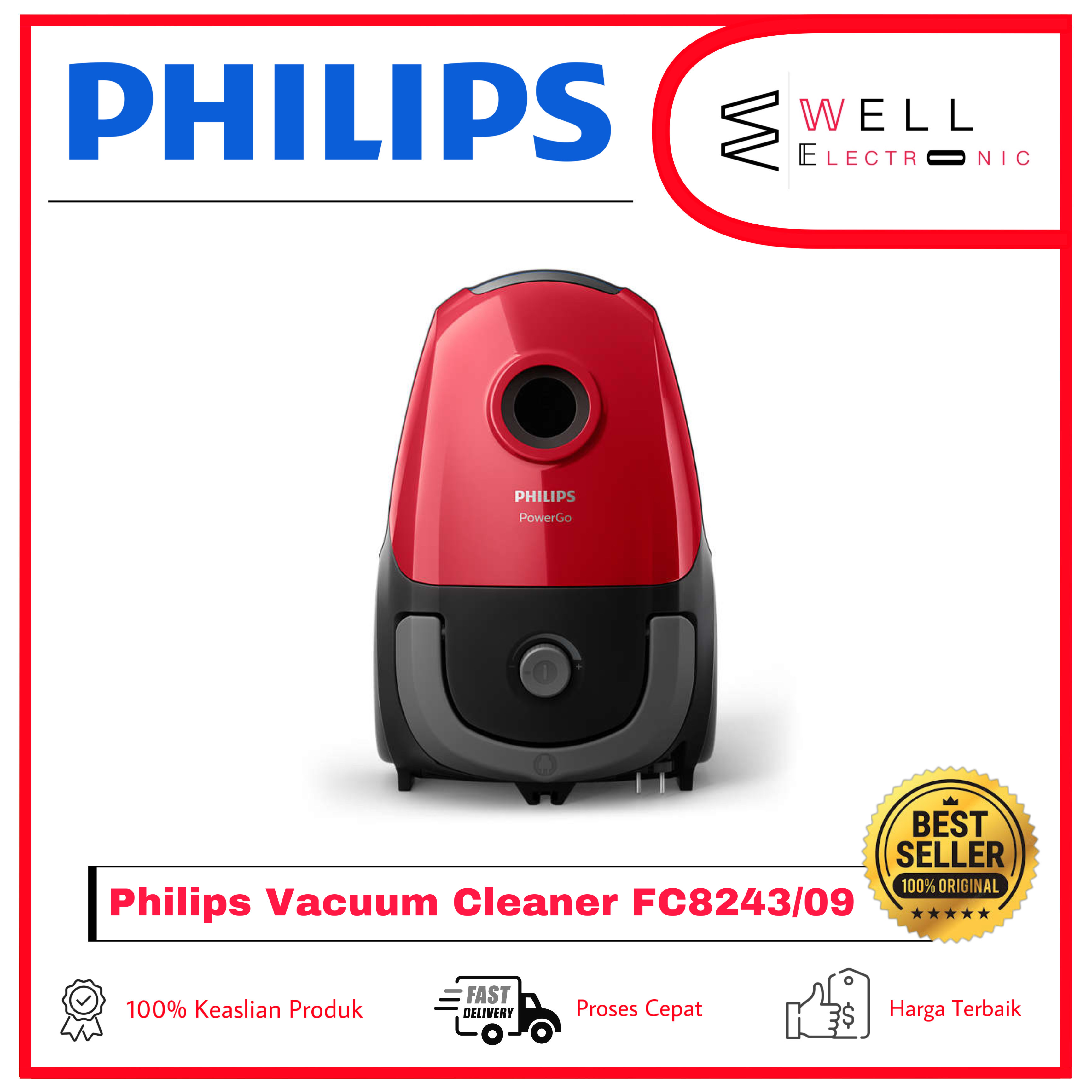 PHILIPS FC8243/09 Vacuum Cleaner Penyedot Debu Sporty Red FC 8243