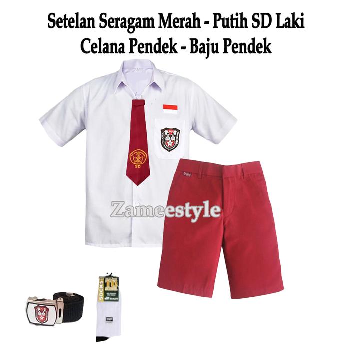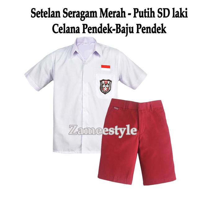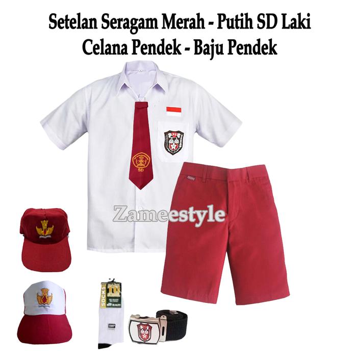 TERLARIS PAKET LENGKAP SETELAN SERAGAM ANAK SEKOLAH MERAH PUTIH LAKI BAJU PENDEK DAN CELANA PENDEK KELAS 16 SD