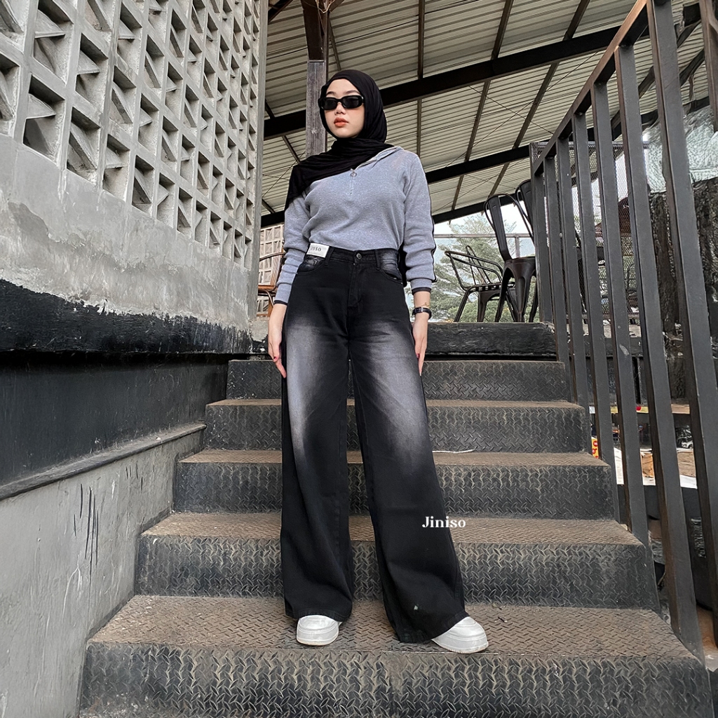 INISO Loose celana jeans wanita jumbo high waist cutbray sobek jiniso cargo pendek standar import baggy pants
