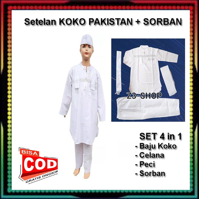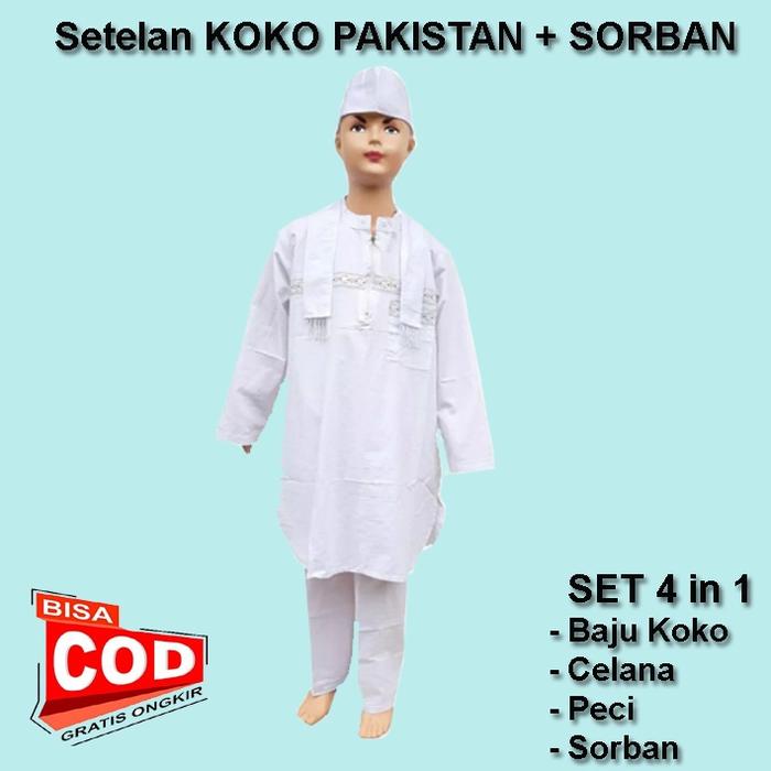 TERLARIS SETELAN BAJU KOKO ANAK MODEL PAKISTAN +SORBAN WARNA PUTIH USIA 412 TAHUNSET 4IN1 KOKO PAKIST, 4 TA