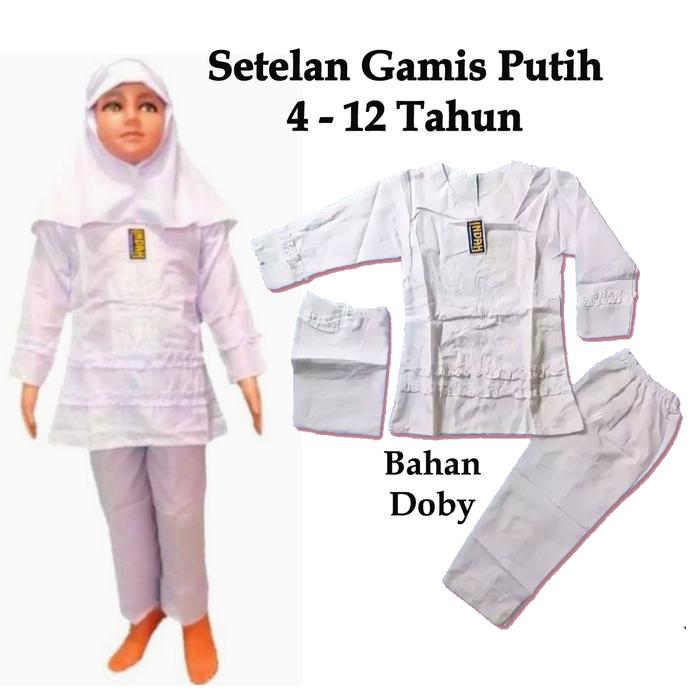 TERLARIS SETELAN BAJU GAMIS ANAK PEREMPUAN WARNA PUTIH BAHAN DOBY USIA 412 TAHUNPUTIH, 4 TAHUN