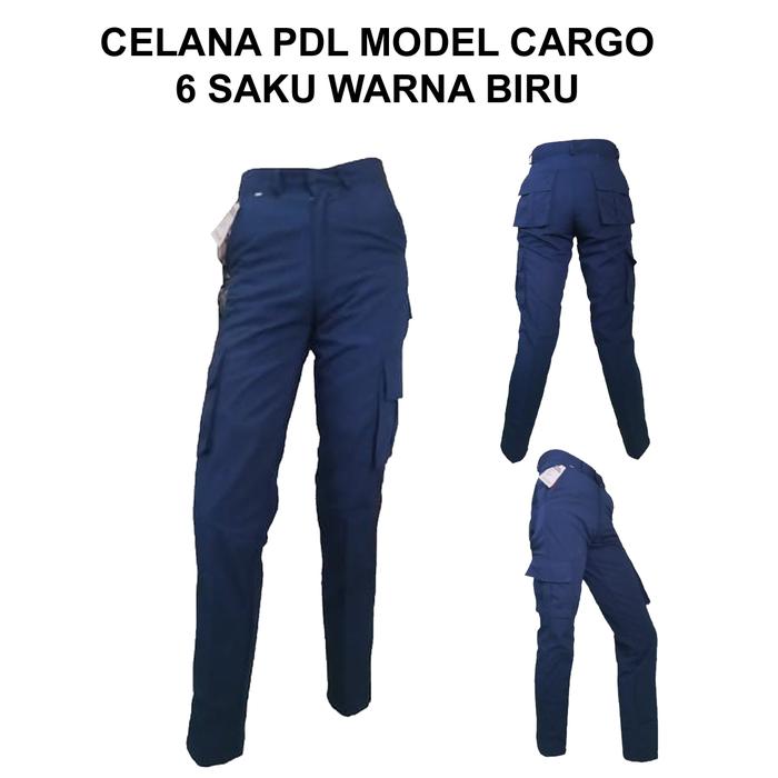 TERLARIS BAWAHAN CELANA SEKOLAH MODEL CARGO PDL 6 SAKU WARNA BIRU SMPSIZE 27