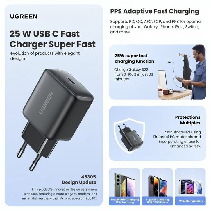 Ugreen 25W Charger Super Fast Charging for Samsung iPhone 15 16 iPad Pixel