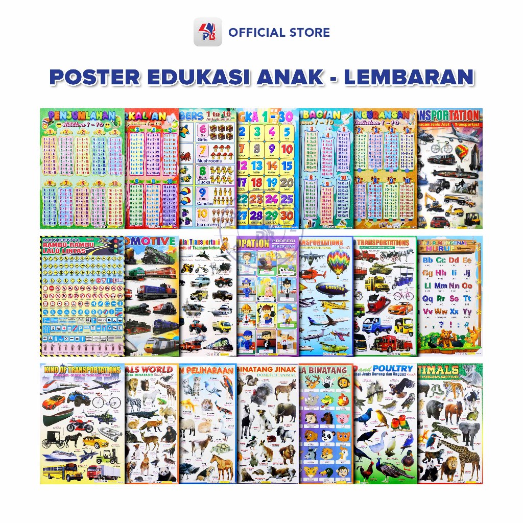 TERLARIS POSTER EDUKASI ANAK MAINAN EDUKASI ANAK LEMBARAN ANIMALS WORLD MACAM SATWA BIRD POULTRY BINATANG JINAK HEWANP
